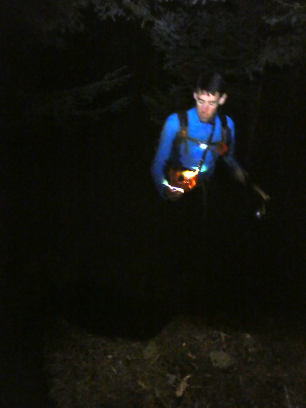 4 h 15 : départ à la frontale , le terrain nous est inconnu, on a un topo et la trace GPS.